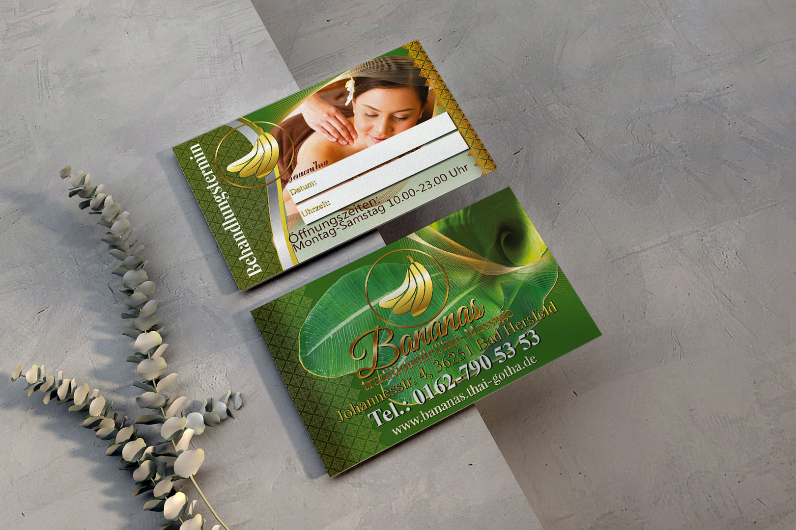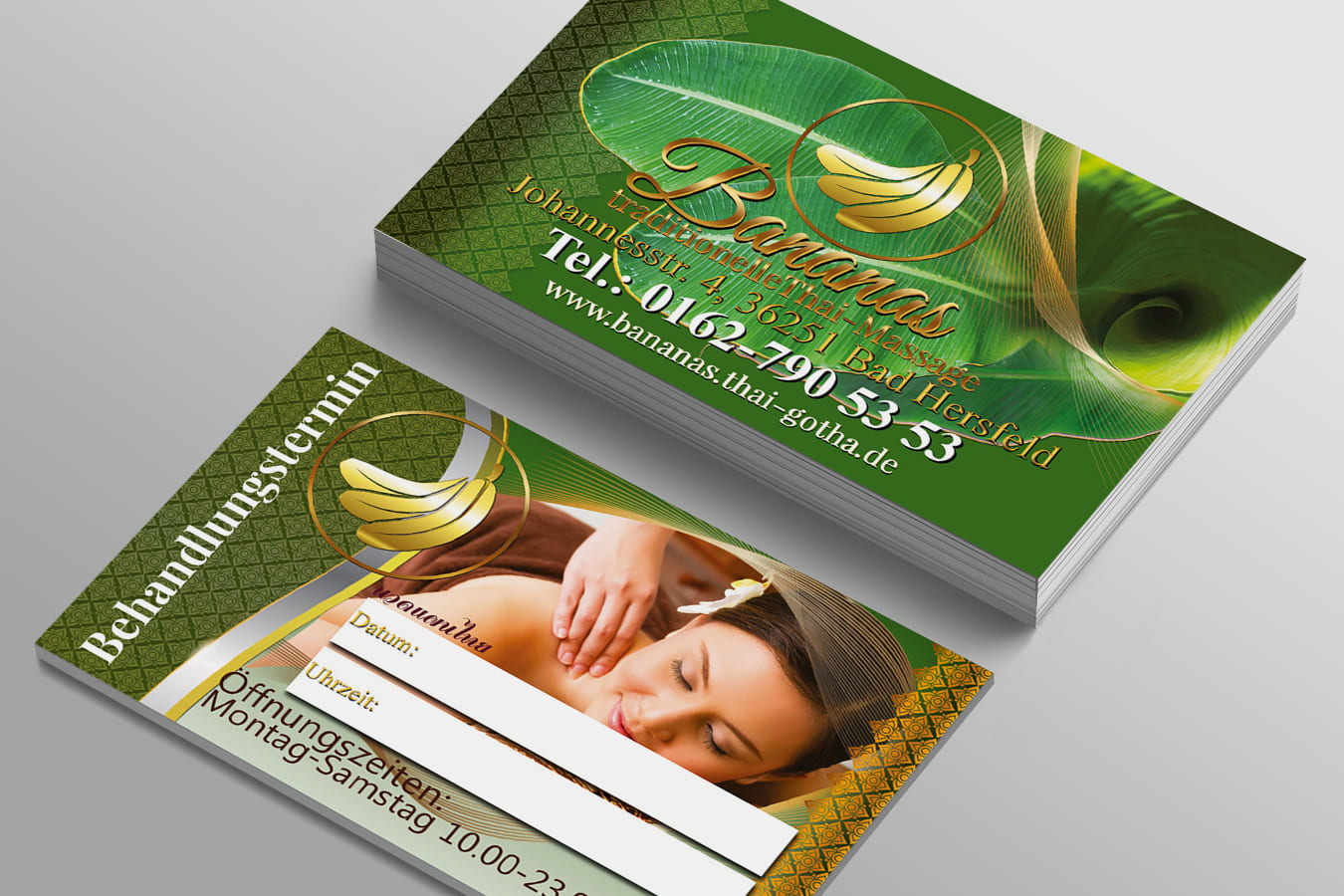 Entdecken Sie kreative Visitenkarten-Designs für Ihr Massagestudio bei Thai-Webmaster DE. Lassen Sie sich inspirieren und erhalten Sie eine individuell gestaltete Visitenkarte, die einen bleibenden Eindruck hinterlässt.