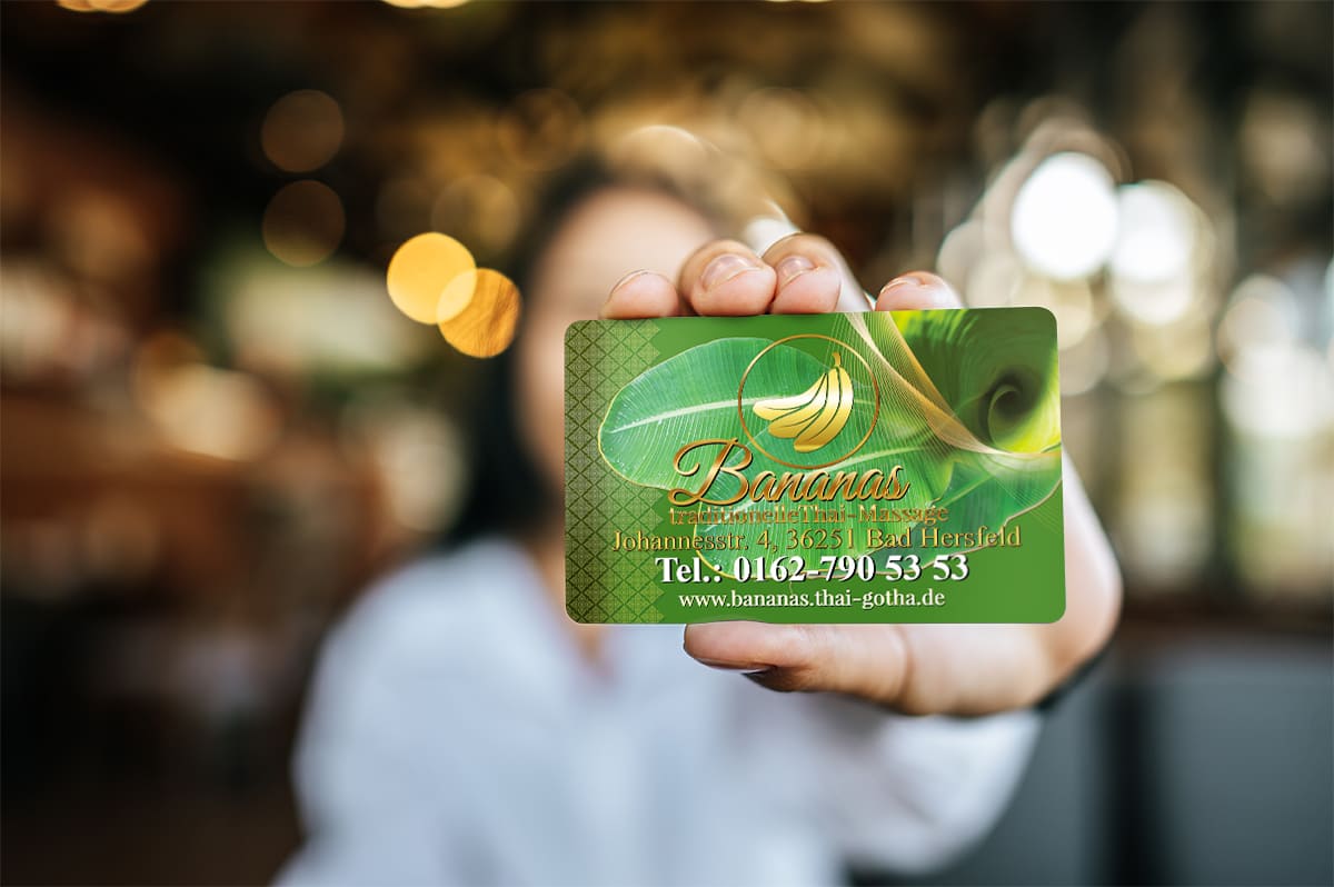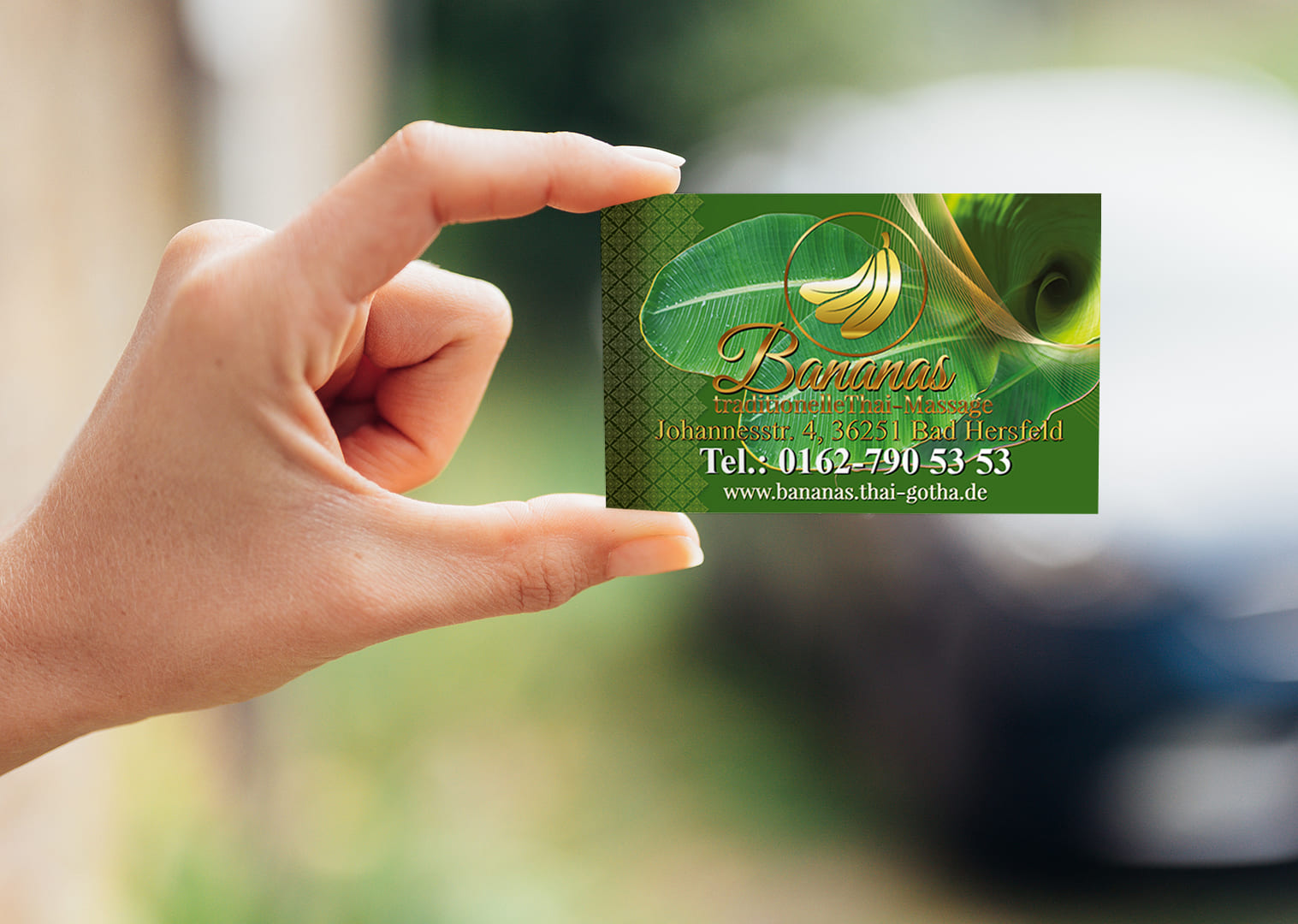 Banana Thai-Massage Visitenkarte Design Entdecken Sie kreative Visitenkarten-Designs für Ihr Thai-Massage-Studio bei Thai-Webmaster DE. Lassen Sie sich inspirieren und kontaktieren Sie uns für eine individuelle Gestaltung!