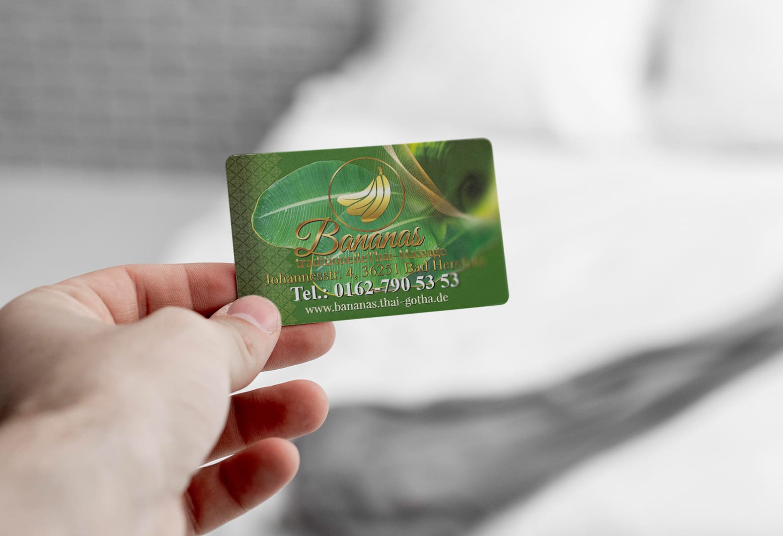 Willkommen bei Thai-Webmaster DE! Wir präsentieren stolz unser kreatives Referenzdesign einer Visitenkarte für das Thai-Massage-Studio "Banana". Unsere talentierten thailändischen Grafikdesigner haben eine visuell ansprechende und informative Visitenkarte entwickelt, die Ihr Massagestudio optimal repräsentiert. Lassen Sie sich inspirieren und erfahren Sie, wie Sie mit einer individuell gestalteten Visitenkarte aus der Masse herausstechen können.