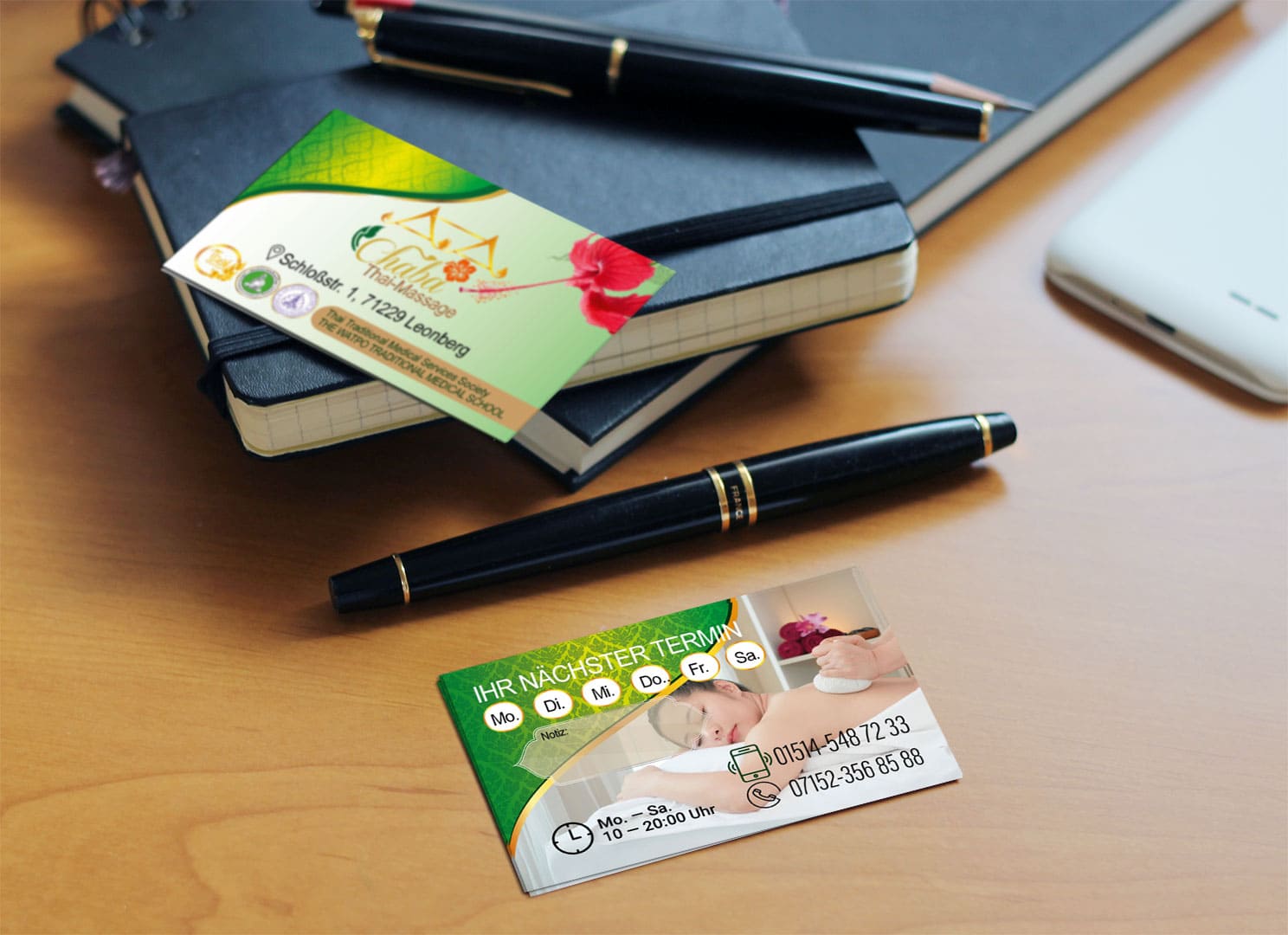Wir freuen uns darauf, Ihnen dabei zu helfen, eine beeindruckende Visitenkarte zu gestalten, die Ihr Massagestudio optimal repräsentiert!