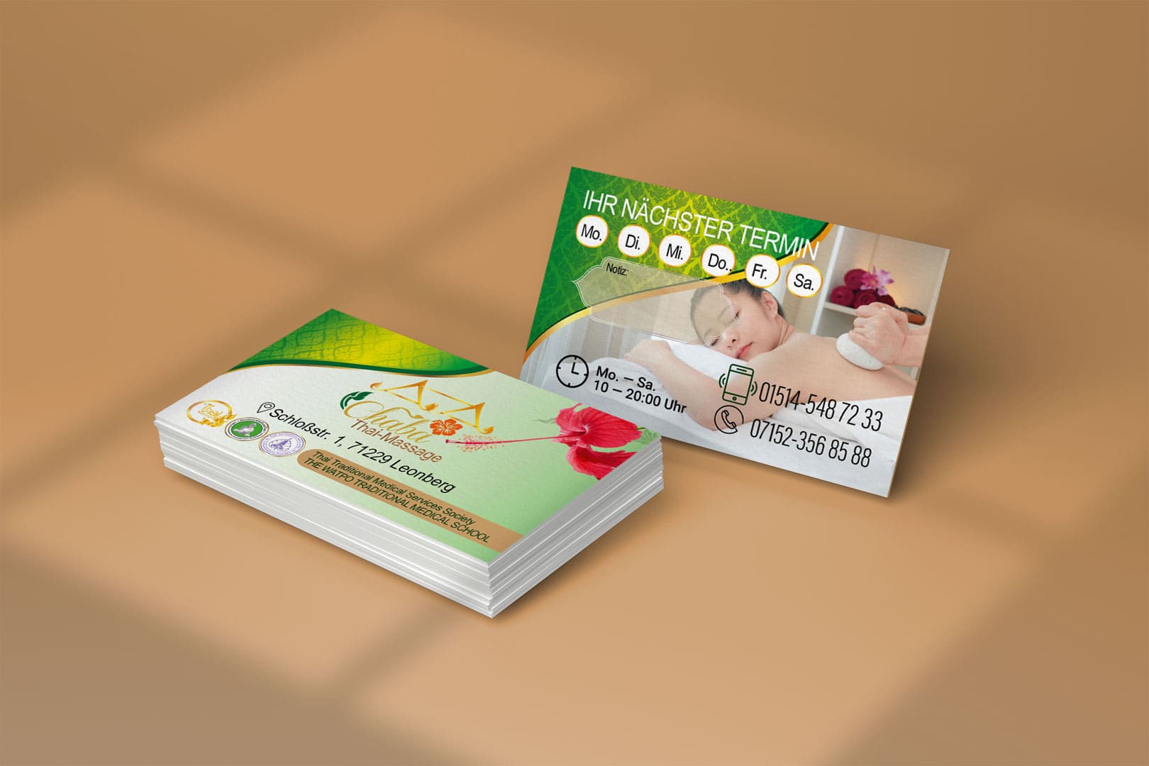 Entdecken Sie unser kreatives Visitenkarten-Design für Thai-Massagestudios!