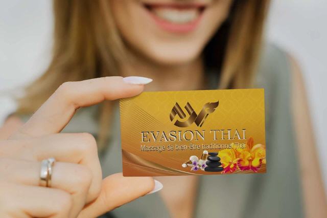 Entdecken Sie liebevoll gestaltete Visitenkarten für die Evasion Thai-Massage in Strasbourg. Thai-Webmaster DE entwirft, druckt und versendet Ihre Visitenkarten in Top-Qualität (Made in Germany). Kontaktieren Sie uns für eine kostenlose Beratung!