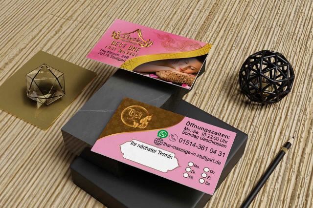 Entdecken Sie kreative Visitenkarten-Designs für Ihr Thai-Massage-Studio bei Thai-Webmaster DE. Lassen Sie sich inspirieren und kontaktieren Sie uns für eine individuelle Gestaltung!
