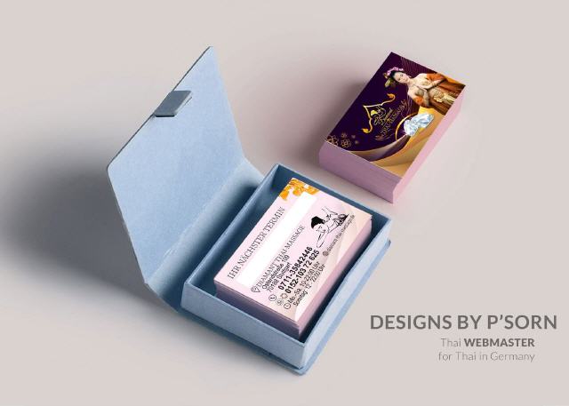 Mein Name ist P'Sorn, ein Grafikdesigner aus dem Isaan, Thailand, und ich freue mich, Ihnen meine Dienstleistungen in Deutschland anzubieten. Ich spezialisiere mich auf die Gestaltung von einzigartigen, thailändisch inspirierten Visitenkarten für thailändische Massagepraxen und Studios. Hier finden Sie zahlreiche Referenzen zu meinen Arbeiten, die Ihnen einen Eindruck von meiner Kreativität und Qualität geben.