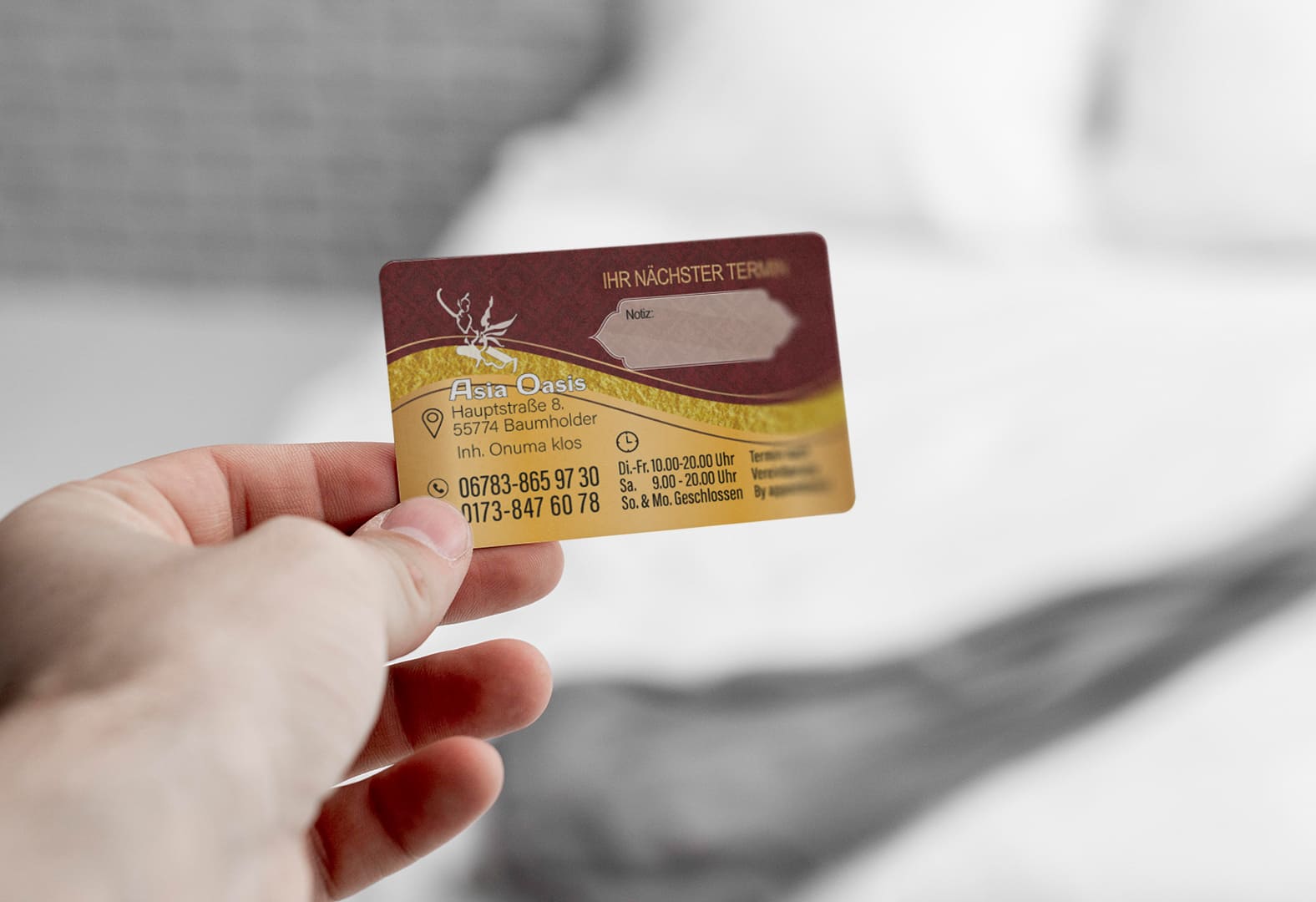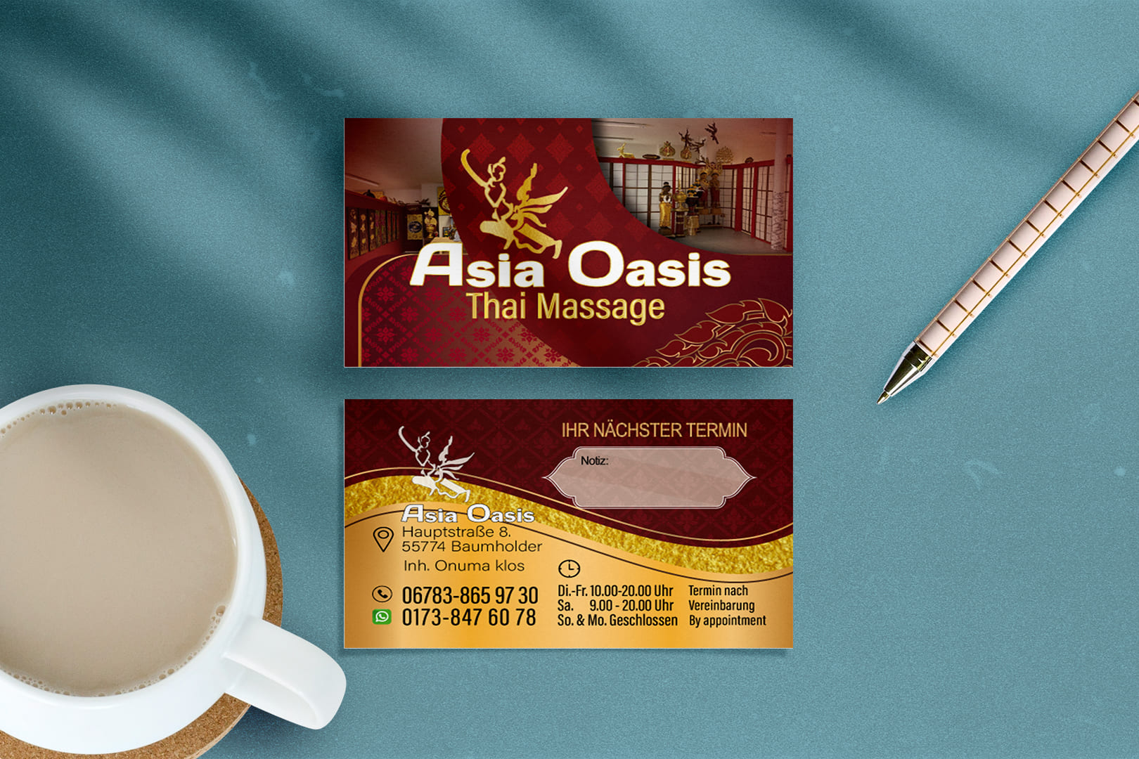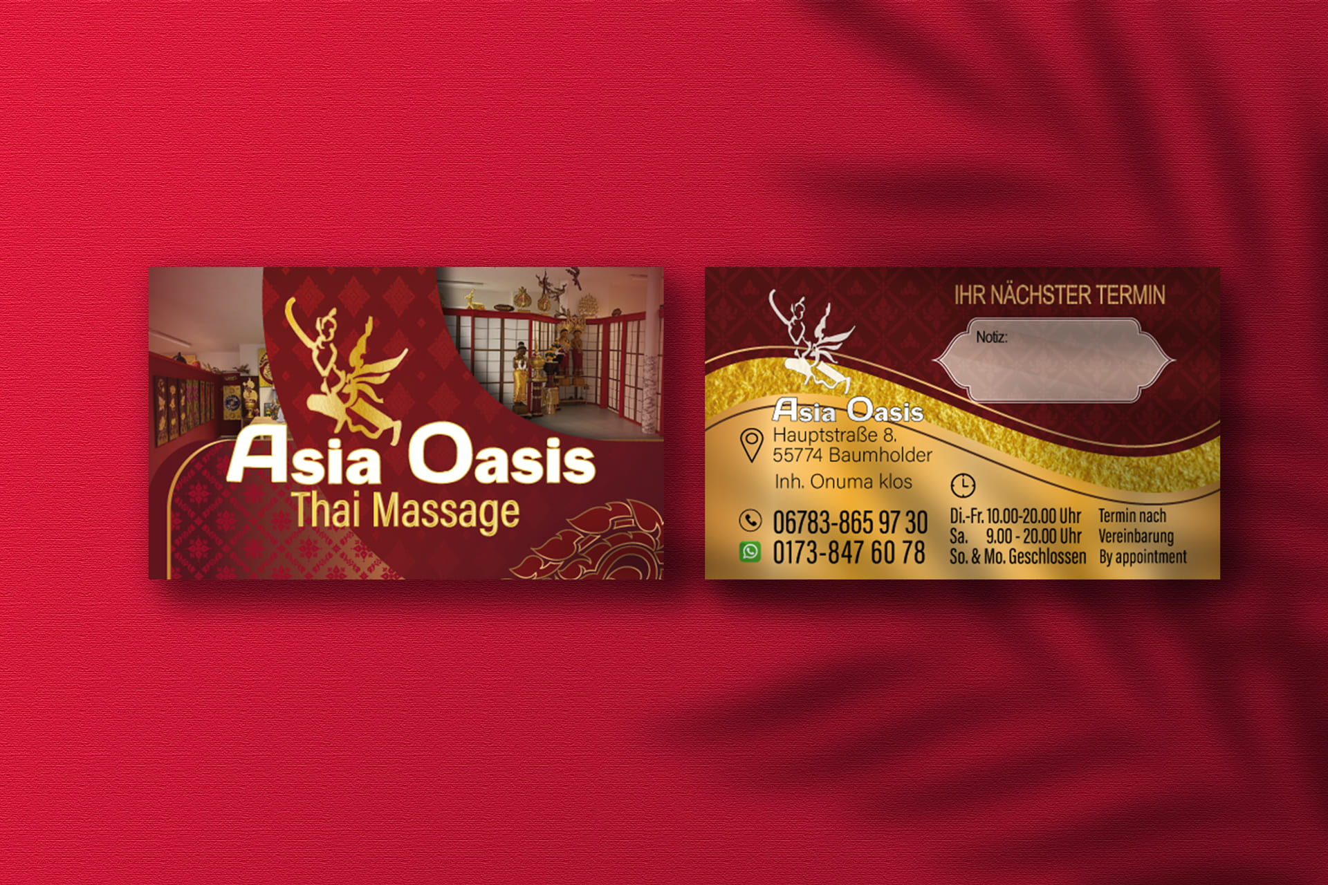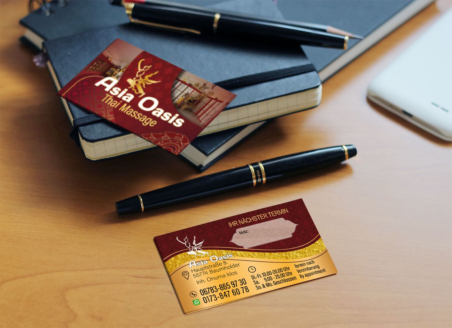 Visitenkarte Asia-Oasis Baumholder-Design Mit unserem Know-how im Thai Mediendesign bringen wir deine Visitenkarte auf das nächste Level - ideal für deine Massage-Praxis in Deutschland.