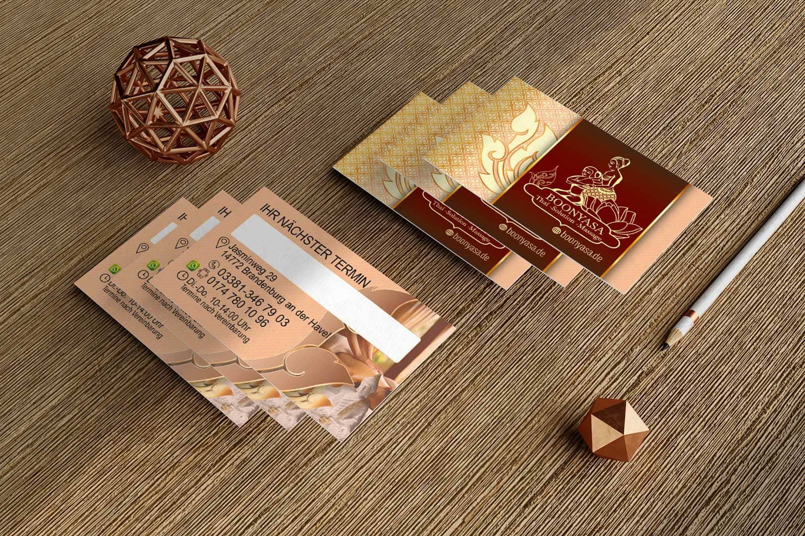 Entdecken Sie kreative Visitenkarten-Designs für Ihr Thai-Massage-Studio bei Thai-Webmaster DE. Lassen Sie sich inspirieren und kontaktieren Sie uns für eine individuelle Gestaltung!