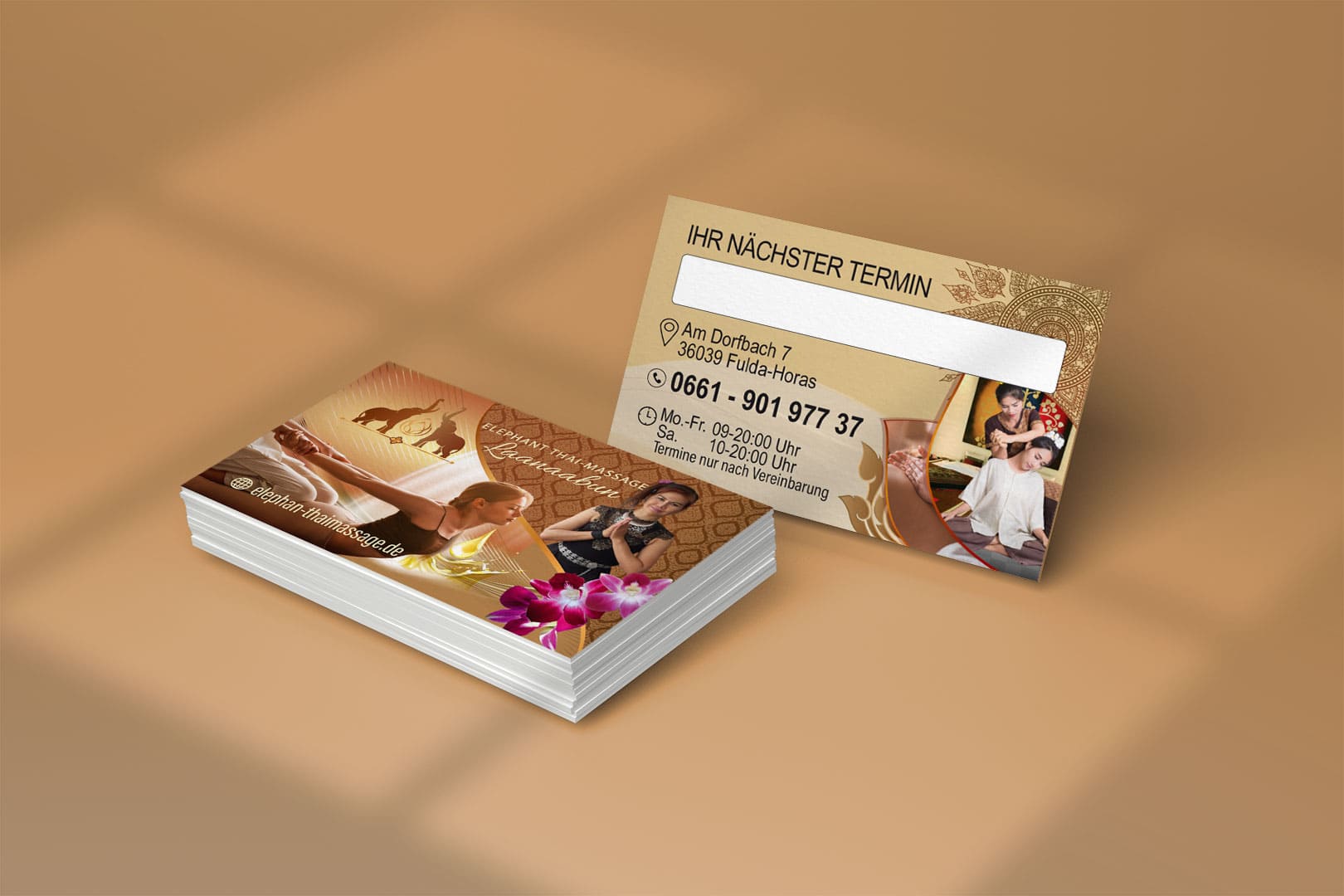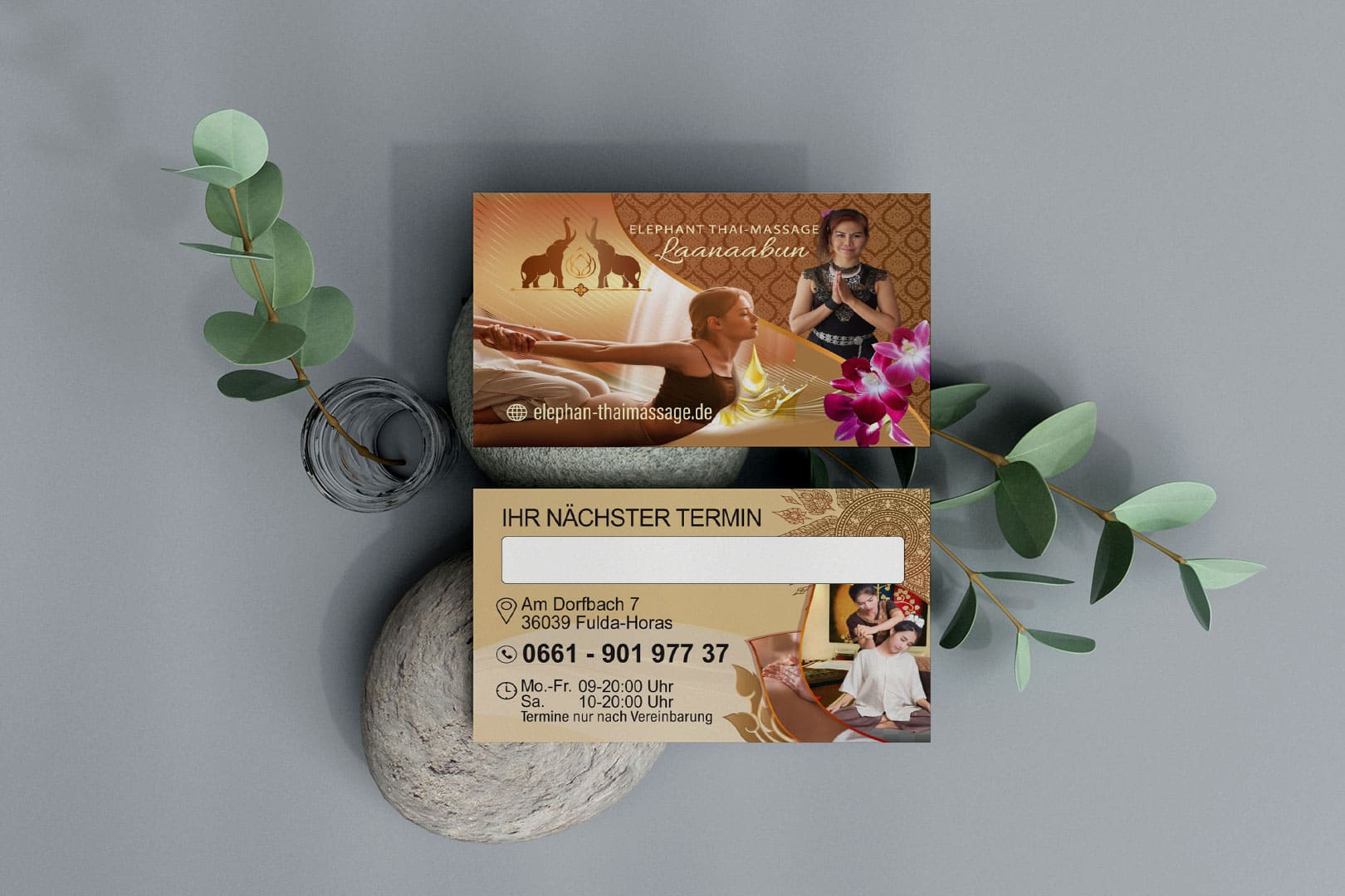 Entdecken Sie unser kreatives Visitenkarten-Design für Elephant Thai-Massage in Fulda!